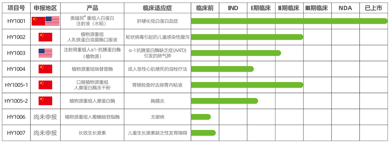 目前,禾元生物已成功地研發(fā)了以?shī)W福民?重組人白蛋白注射液(水稻)(Recombinant Human Albumin Injection from Oryza Sativa)為代表的系列植物源醫(yī)藥產(chǎn)品,奧福民?已于2025年獲批上市。此外,還有一些PMP產(chǎn)品已經(jīng)陸續(xù)進(jìn)入臨床試驗(yàn)階段。