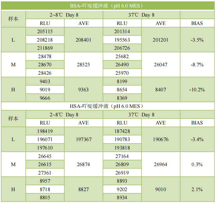 結(jié)論:加入1% 禾優(yōu)?OsrHSA作為穩(wěn)定劑,37℃放置相對于4℃放置的信號衰減值明顯優(yōu)于BSA(圖7)。