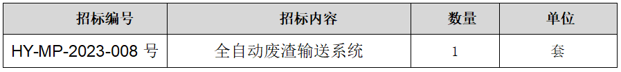 武漢禾元生物科技股份有限公司擬對禾元生物全自動廢渣輸送系統(tǒng)項目進行公開招標。