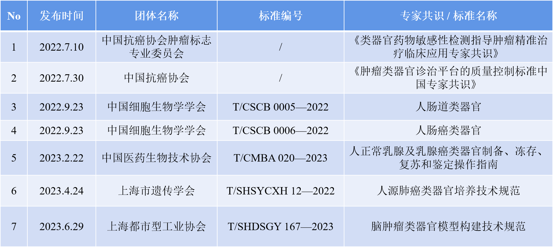 表2 國(guó)內(nèi)施行的類器官相關(guān)團(tuán)體標(biāo)準(zhǔn)